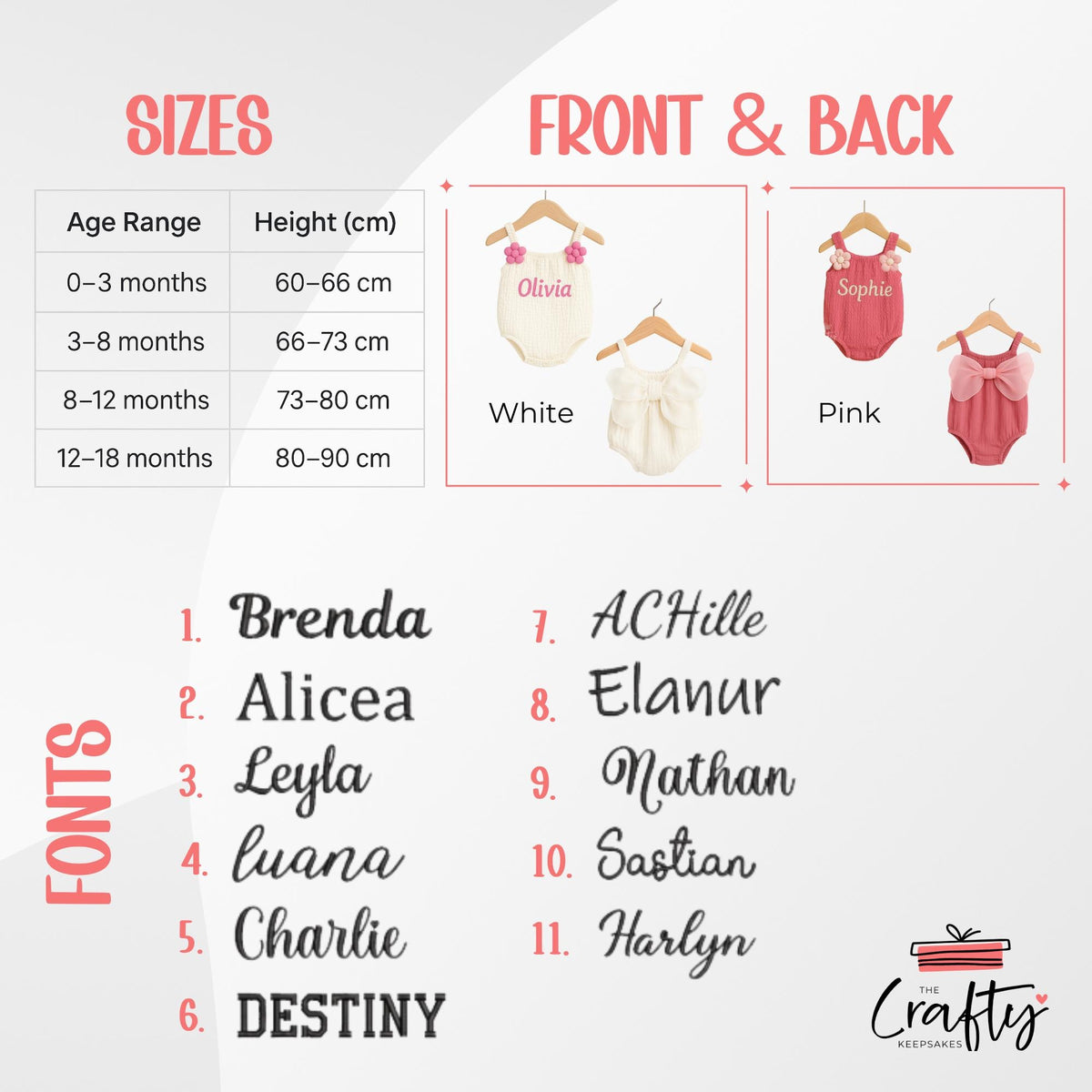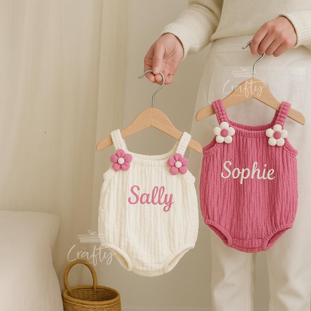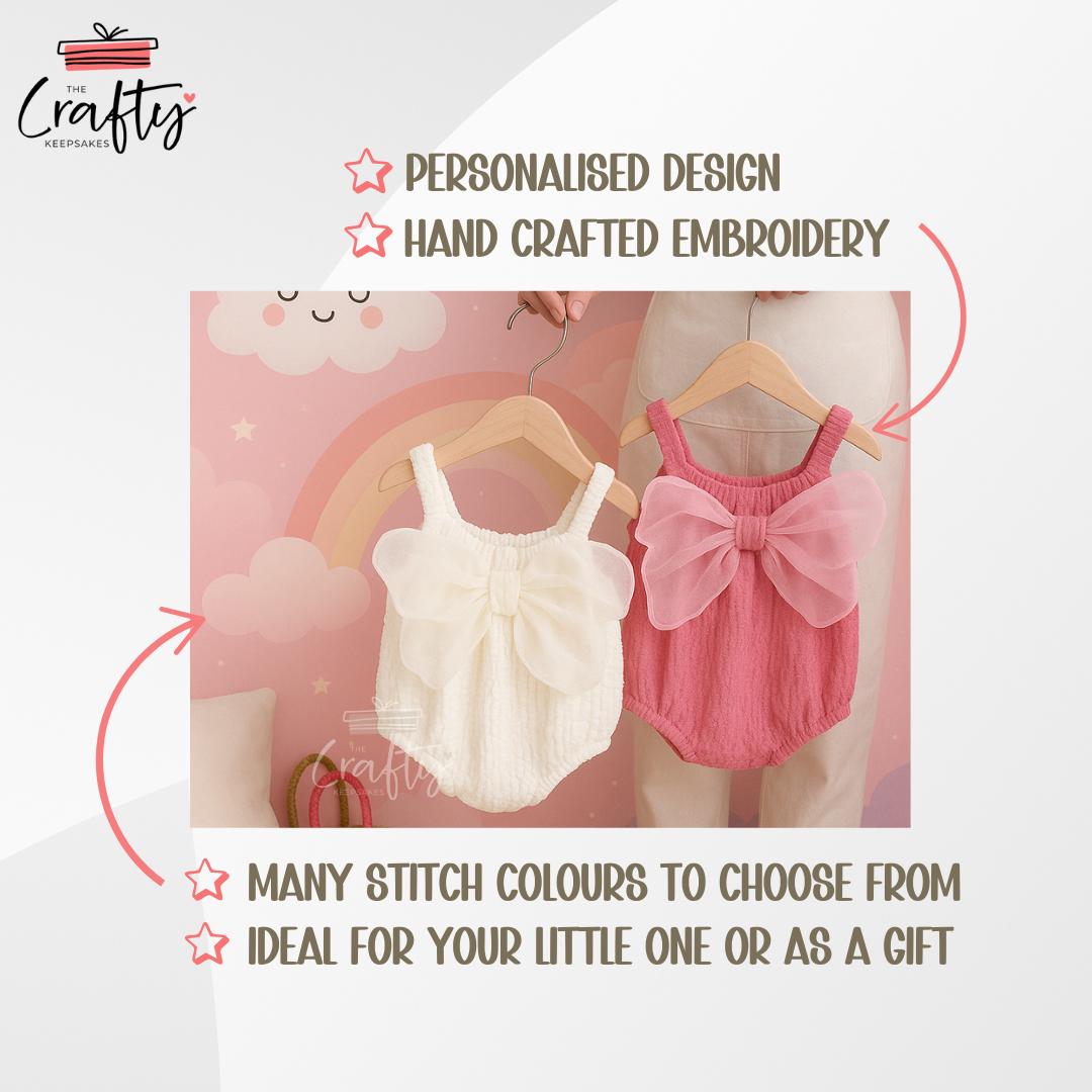 Add a sprinkle of magic with this enchanting romper featuring delicate fairy wings and floral shoulder accents. Personalised with your baby’s name, it’s perfect for birthdays, photoshoots, or memorable gifting.