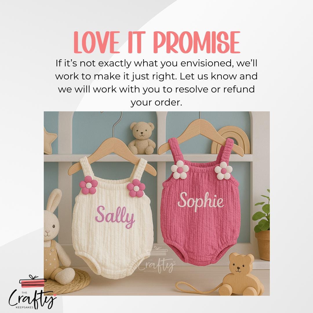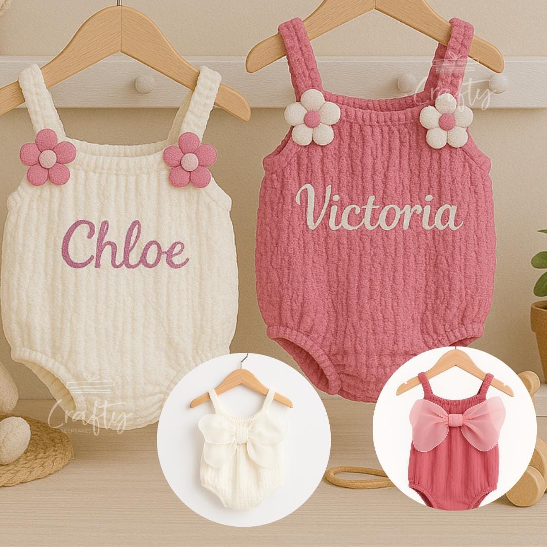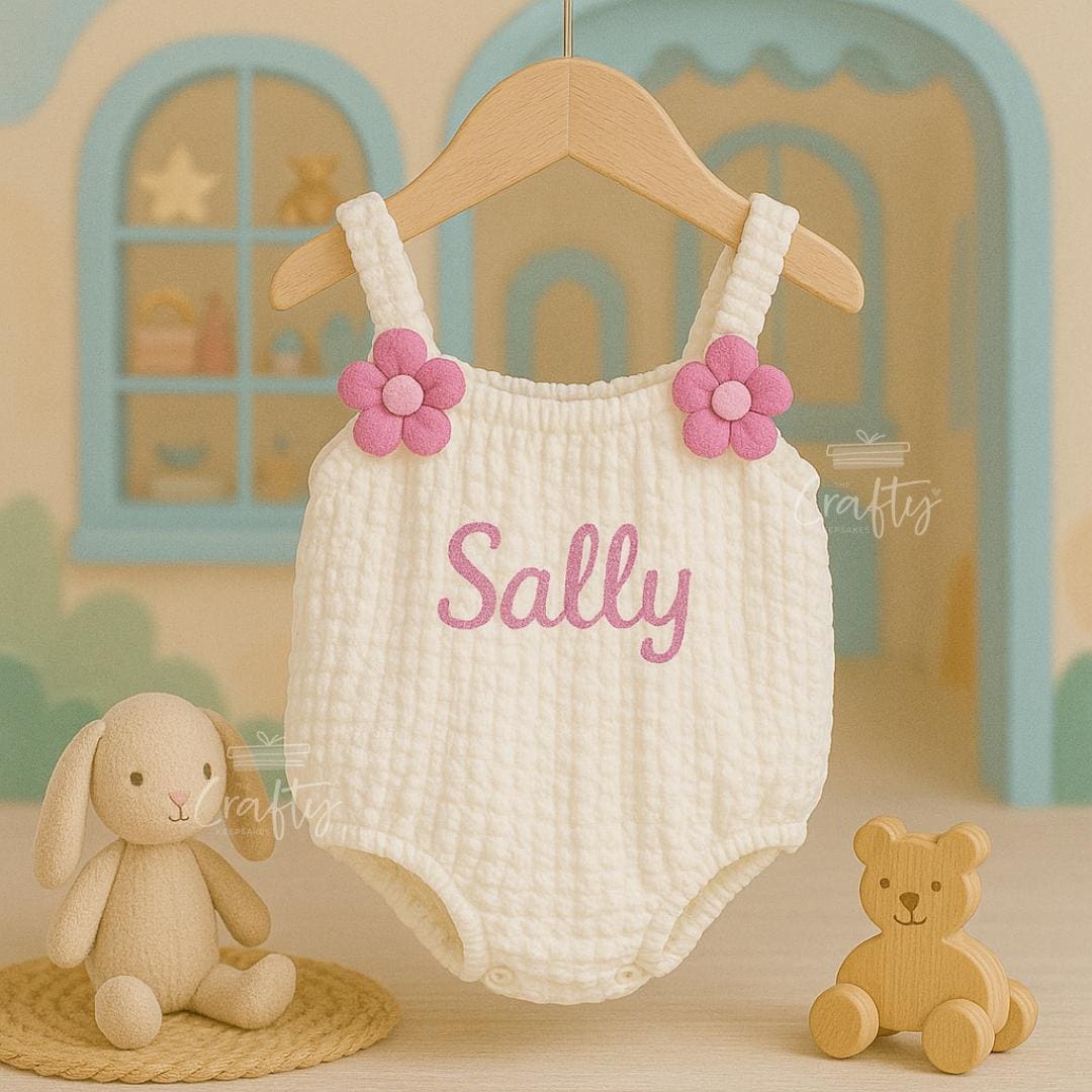 Add a sprinkle of magic with this enchanting romper featuring delicate fairy wings and floral shoulder accents. Personalised with your baby’s name, it’s perfect for birthdays, photoshoots, or memorable gifting.