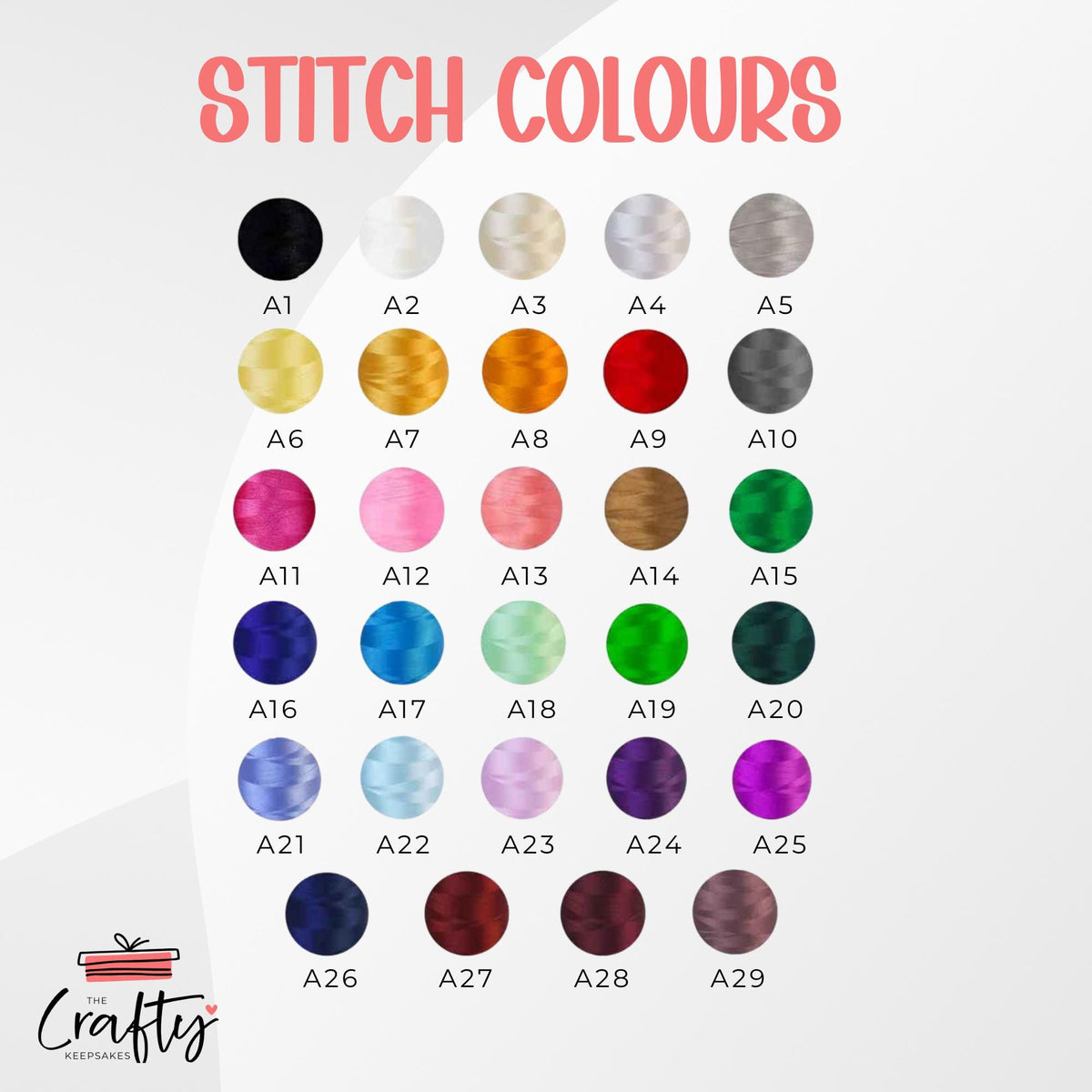Each item is lovingly hand-embroidered, ensuring a unique and high-quality finish. Because this is a handmade process, the name in your chosen font may have slight variations compared to a digital mock-up. These subtle differences add to the charm and authenticity of a truly handcrafted piece, making each item one of a kind.