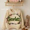 💐 Each sweater showcases your child’s name in soft, textured embroidery, surrounded by a charming circular wreath made of wool flowers and leaves. The gentle blend of pastel and bold tones creates a timeless, storybook look that’s both playful and elegant.